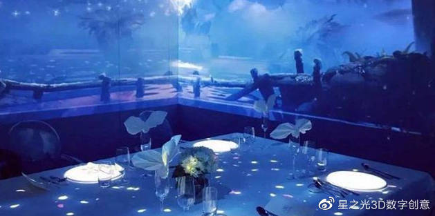 每一家餐廳的靜謐時(shí)場(chǎng)景都是可以定制的,可以是沉浸式的海底世界,也可以是沉浸式的花海、沉浸式森林等等,可以按照客人的喜好,在不同的節(jié)日期間進(jìn)行切換。