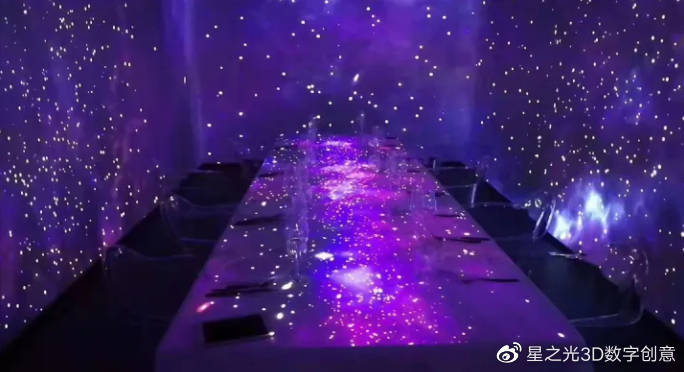 全息餐廳又稱全息光影餐廳、互動(dòng)餐廳、沉浸式餐廳,是一種全新的餐飲方式,利用三維立體影像、聲音、互動(dòng)等多種要素,創(chuàng)造出真實(shí)的畫面。