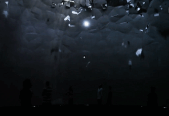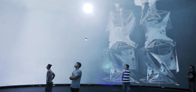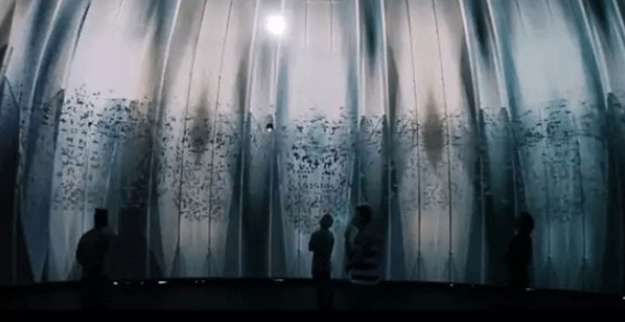 整個(gè)展示的場(chǎng)地呈現(xiàn)出的是一種特殊的穹頂結(jié)構(gòu),觀眾處于一個(gè)封閉的空間內(nèi),可以感受各種各樣的視覺(jué)效果的變化。