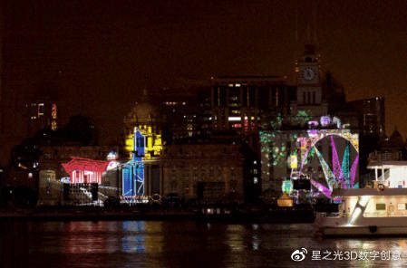 建筑投影展示是以光與影的形式將靜態(tài)建筑喚醒,既可以達到建筑的全部覆蓋,又可以利用特定的位置、設(shè)計與建筑結(jié)構(gòu)相結(jié)合的數(shù)碼影像內(nèi)容,以獨特的創(chuàng)意表現(xiàn)形式,使建筑煥發(fā)出新的生機