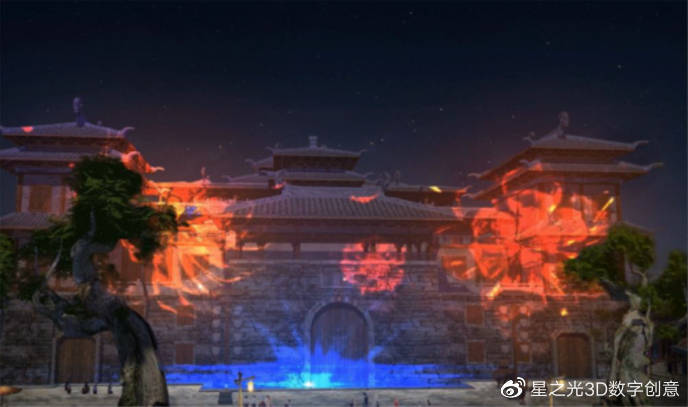 古建筑是一種特殊的形式,它蘊含著豐富的文化意蘊。投影屏應該與古老的建筑物在一條直線上,利用光線、陰影和動態(tài)的方式展示出美麗的、令人嘆為觀止的裸眼全息影像。投射光所展示的內(nèi)容,讓參觀者可以置身于古色古香的建筑之中。